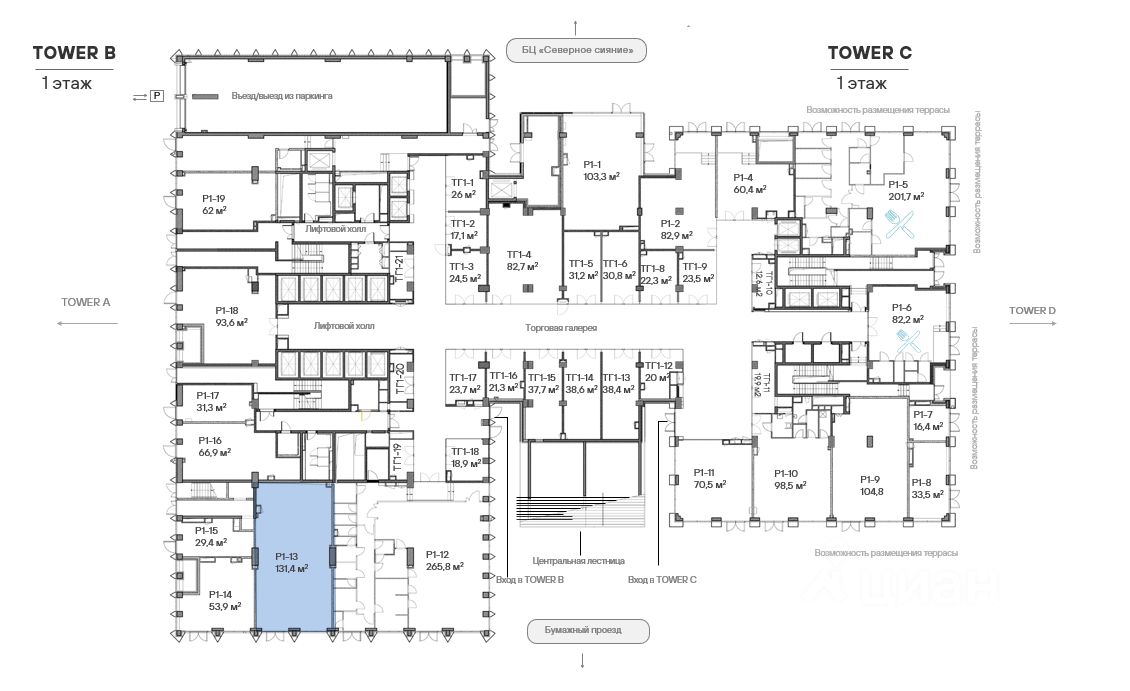 Аренда Торгового помещения на 1 этаже офисного квартала STONE Towers на 11 000 сотрудников. Высокий трафик обеспечен сотрудниками самого квартала, жителями района, а также соседних бизнес-центров.