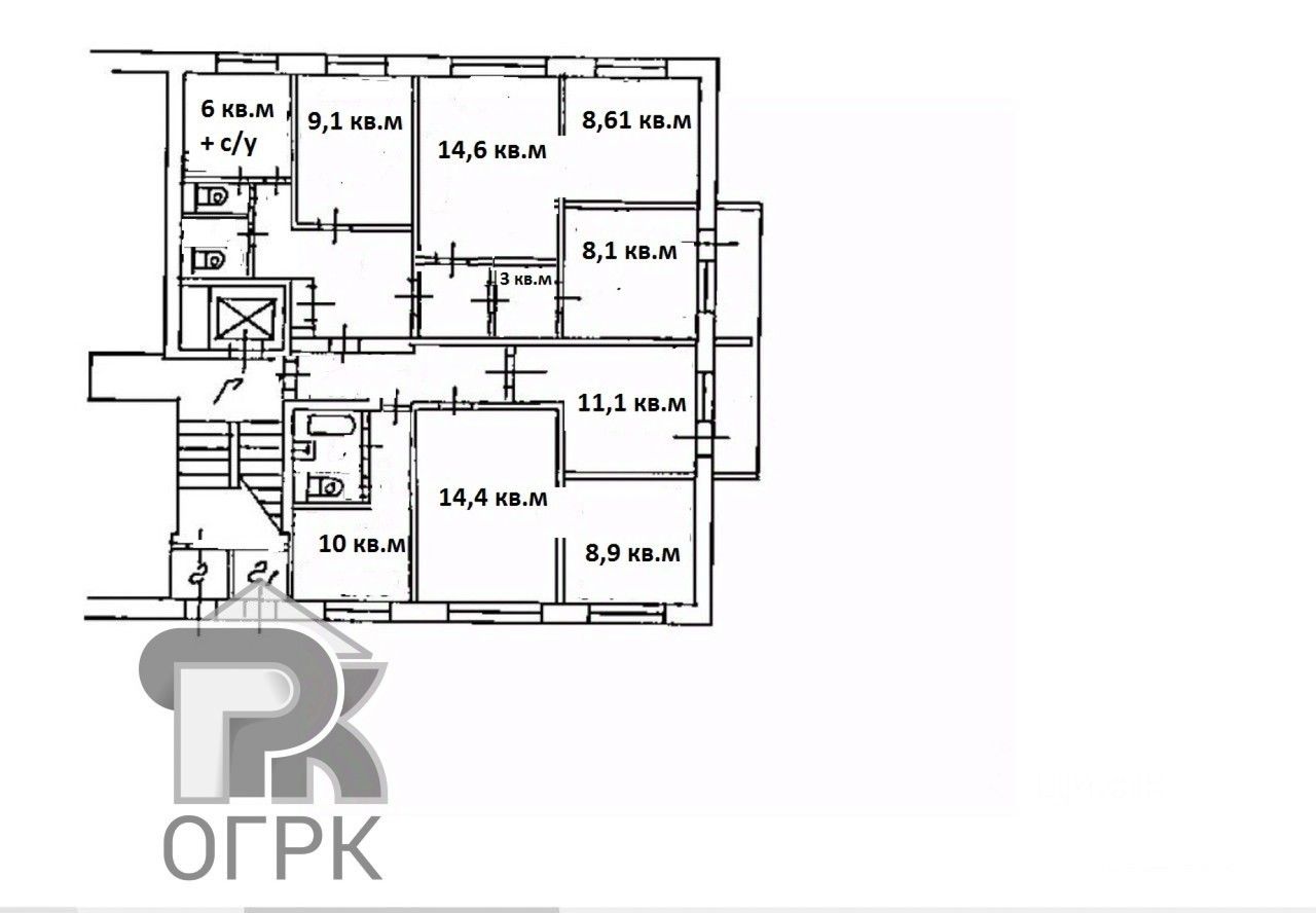 Один санузел в общем пользовании.