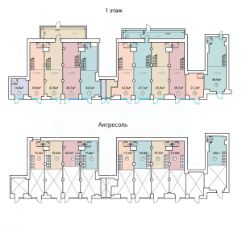Первый этаж: 45,9 кв.м, антресоль: 18,3 кв.м.
