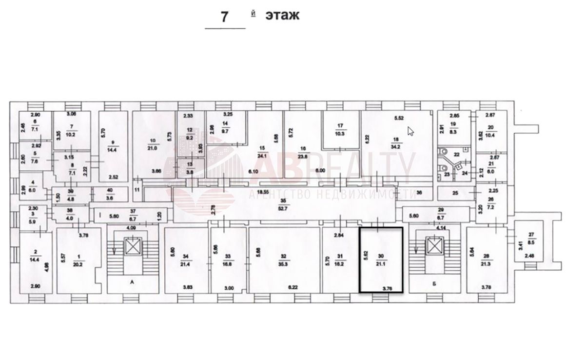30,8кв.м: 5 этаж. Одна комната. Витринные окна.
