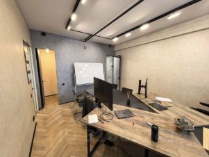 Офис оборудован: приточно-вытяжной атономной системой вентиляции, кондиционированием, сервером с двумя независимыми линями интернета, охранной сигнализацией, системой пожаротушения, мебелью, оборудованной кухней для персонала с посудомойкой, видеонаблюдение в офисе и по периметру с наружи, системой учета рабочего времени сотрудников и контролем доступа со сканером отпечатков пальца, на всех радиаторах отополения можно регулировать температуру. В офисе две зоны "опен спейс", два глухих кабинета, 4 стеклянных кабинета, переговорная, кухня для персонала. Зона директорской заслуживает отдельного внимания: есть отдельный выход через подъезд дома, две комнаты, санузел с душевой кабиной и теплыми полами, стиральной машиной, отдельная своя кухня с встроенной техникой, фэйс id на вход. Директорскую зону можно использовать как квартиру. С парковкой все хорошо, территория закрытая, с наружи тоже мест полно. Рядом с офисом бесплатная зарядка для электромобилей. С транспортной доступностью проблем нет, на против остановка трамвай дмитровская, тимерязевская, петровско разумовская, войковская. Пешим 15 минут до метро Тимирязевская.Спортивный торг))