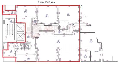 7 этаж офис 254,5 кв.м - ресепшн, кабинеты, переговорная, с/у, гардероб.