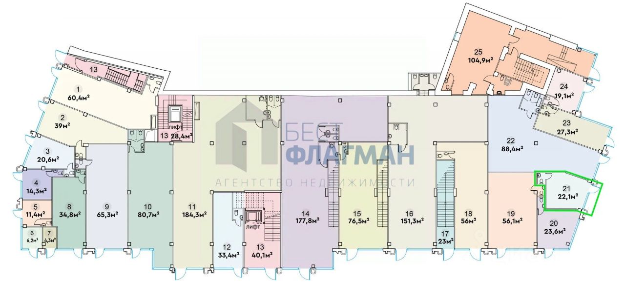 Арт. 101186140 Сдается в аренду помещение площадью 21.1 кв.м., на 1-м этаже здания, в 7 минутах пешком от выхода из станции метро "Пушкинская". Ввод в эксплуатацию в IV- квартале 2025г. Быстрый выход на сделку. Оперативный показ