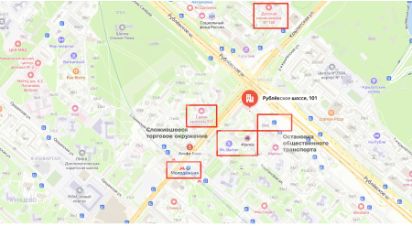 -интенсивный пешеходный и автомобильный трафик, плотный жилой массив в окружении;