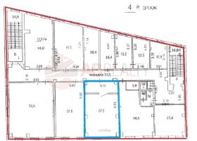 5 этаж офисный отдельный блок 523,6 кв.м. Зона ресепшн, зона руководства, кабинеты.