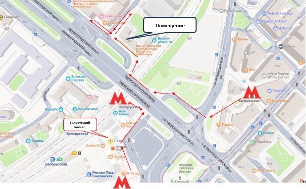 - Белорусский вокзал - 250 м;