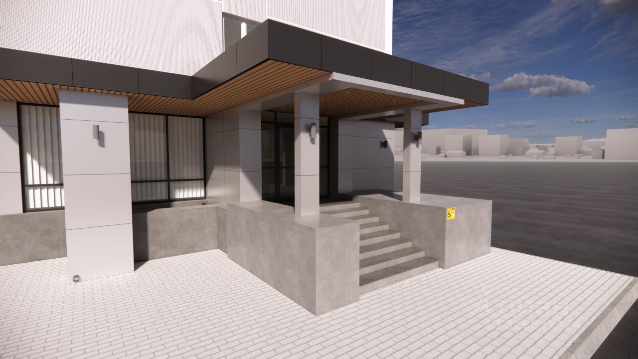 Планируется обновление входной группы и замена остекления.