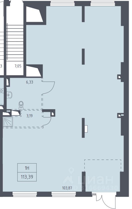 Помещение расположено между первой линией и центральной частью, на которых будет сосредоточен основной пешеходный и автомобильный трафик всего ЖК