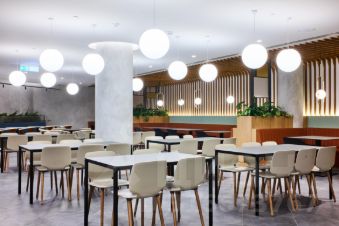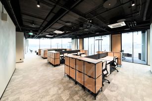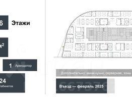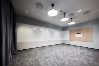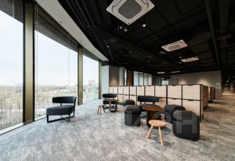Здание с панорамным застекление. Дизайнерский ремонт. Есть эскалатор и 4 лифта. Презентабельная входная группа с ресепшеном. На 2-6 этажах есть кухни, зоны отдыха и гардеробные. Общая столовая на 1-м этаже. Вентиляция: приточно-вытяжная. Кондиционирование: центральное. 130 кВт - расчетная мощность электроснабжения на один этаж.