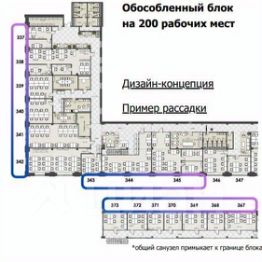 В помещении стандартная отделка, смешанная планировка. 200 рабочих мест. Центральная система кондиционирования и приточно-вытяжная система вентиляции. В наличии наземная парковка (15 000 руб. в месяц за м/место).