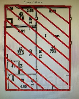 5 этаж - 148 кв.м. (офис), смешанная планировка, выполнен косметический ремонт.