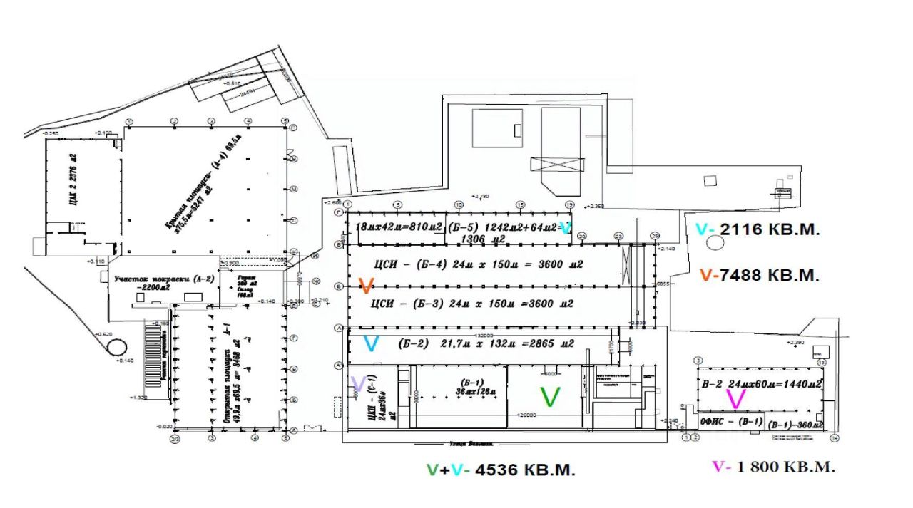 Размер помещения 150*48 м - два пролета по 150*24м.