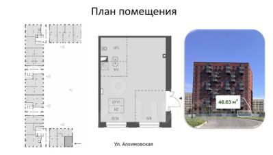 Угловое помещение на первой линии, смотрит на сданную и заселенную очередь напротив, просматривается издалека через перекресток с улицы Уткина, 2 витринных окна со стороны Алхимовской улицы и вход с торца;