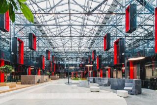 - 8 дизайнерских пространств для отдыха или проведения рабочих встреч с высотой потолков более 8 метров. Удобные диваны и кресла идеально подходят для нетворкинга;