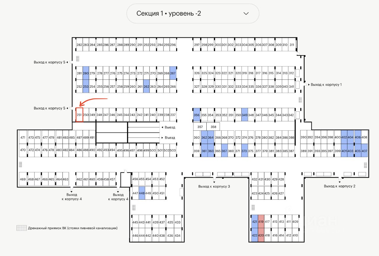 Сдаётся машиноместо 251 на -2 этаже 14,5 кв.м. Въезд со стороны Горбушки, доступ ко всем подъездам. угловое близко к лифтам электронный ключ