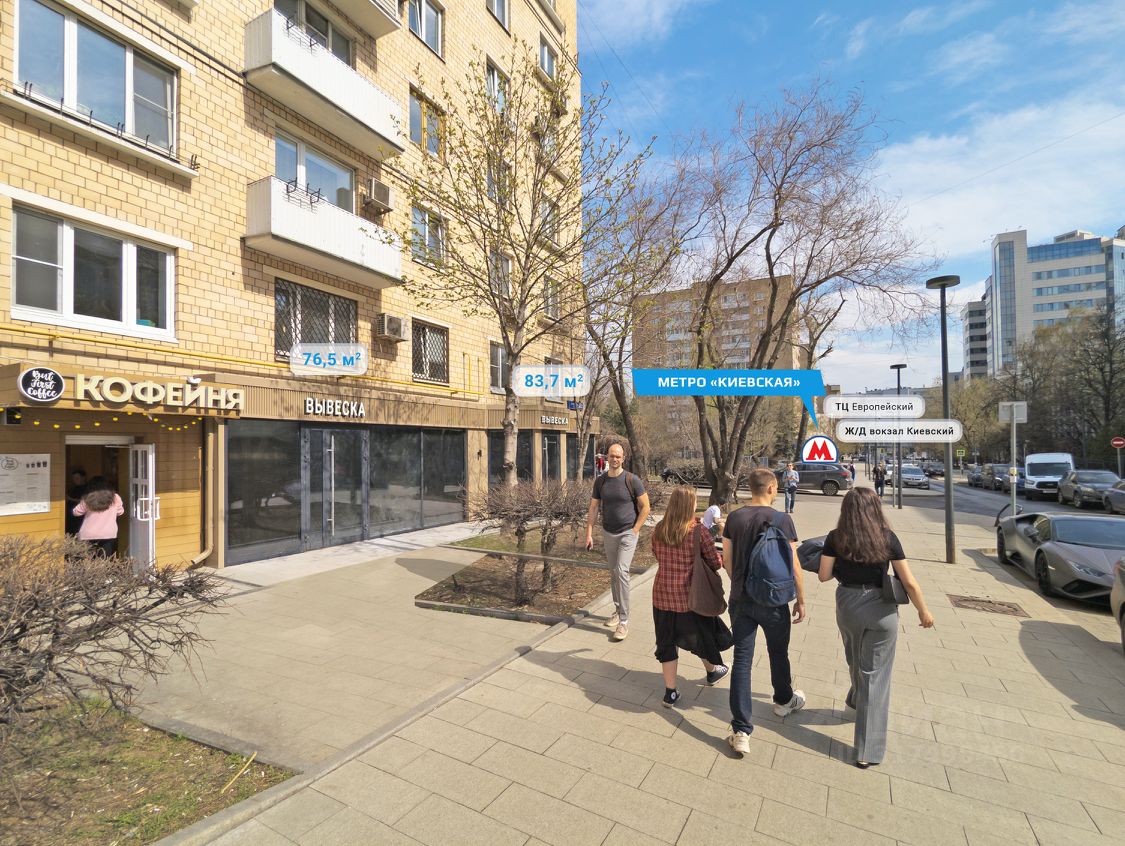 Андрей. Предлагается в аренду помещение на улице Брянская, ЗАО, г. Москва. Шаговая доступность от ст. метро Киевская — 5 минут пешком. Отличная пешеходная и транспортная доступность. Высокий рекламный потенциал и возможность размещения вывесок на фасаде.