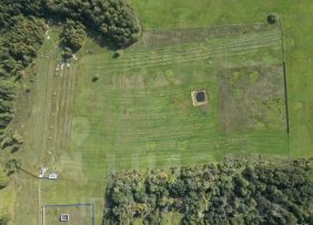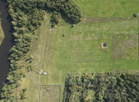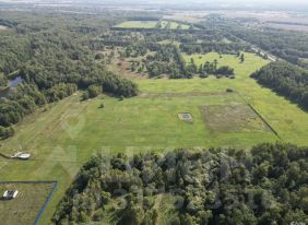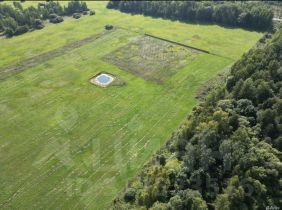 Коммуникации : электричество 15 кВт, перфорированный септик с канализационным отводом полностью "под ключ", входной кабель напряжения вместе с кабелем оптоволокна интернета заведены в землю на глубину 1,5 метра, закопаны две хорды по двум сторонам участка. На участке - искусственный пруд 18x18 глубиной 4,5 метра, забор общей протяженностью 1,5 км - штакетник в перемешку с сеткой рабицей, автоматические ворота,полностью готовый фундамент на два дома в разных концах участка - железобетонные сваи забивные, 400 яблонь двух промышленных сортов , бытовки готовые для временного проживания.