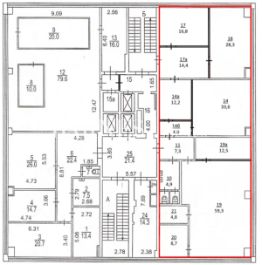 Офис расположен на 13-м этаже. Планировка кабинетная.