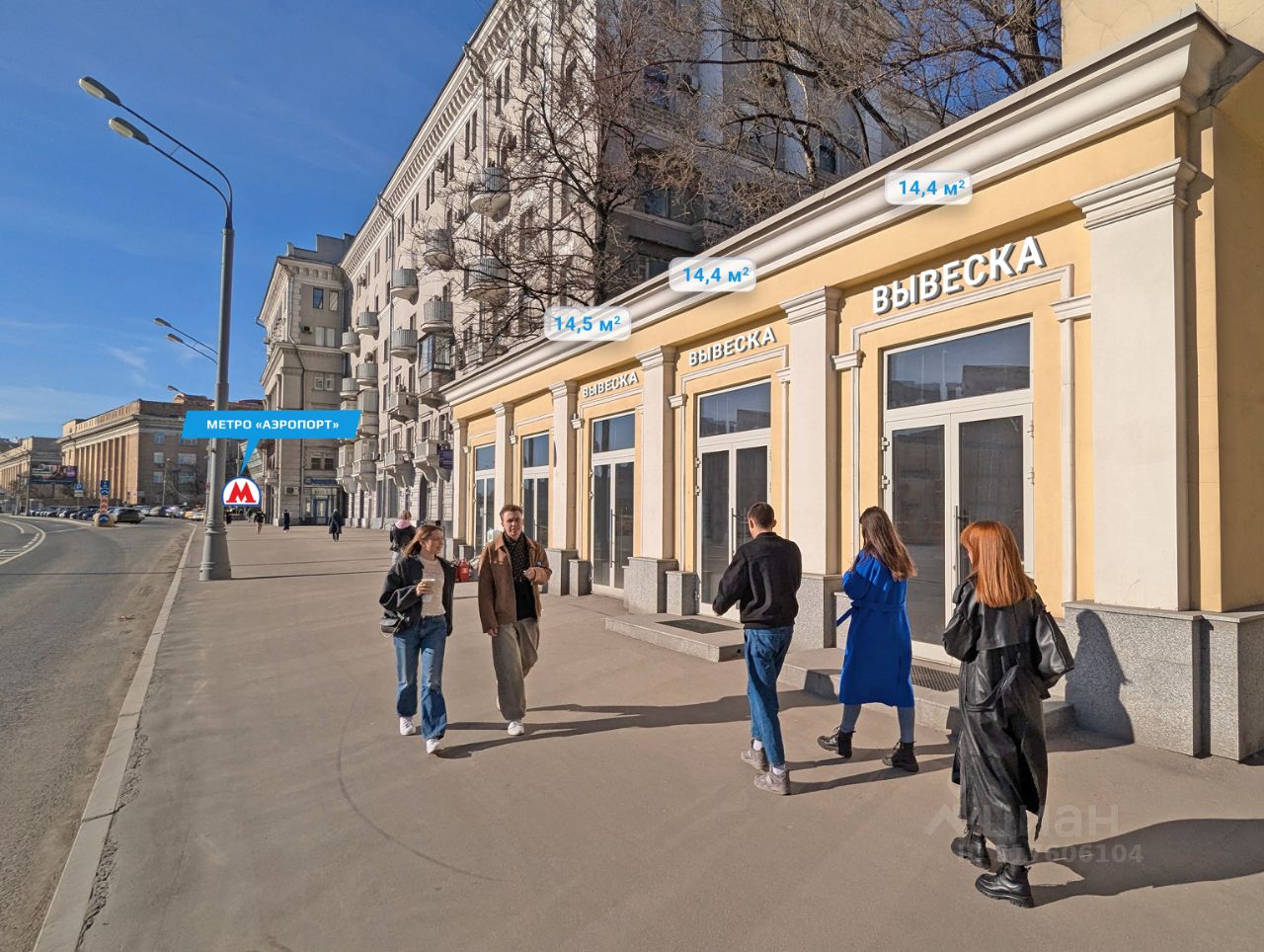 Андрей. Предлагаются в аренду помещени на Ленинградском проспекте, САО, г. Москва. Объект расположен на первом этаже рядом с метро Аэропорт — менее 1 минуты пешком. Сверхинтенсивные автомобильный и пешеходный трафики. В непосредственной близости выход из метро, подземный пешеходный переход и остановка общественного транспорта. Высокий рекламный потенциал и места для размещения вывесок.