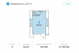 Предлагается в аренду помещение на улице Ярцевская, ЗАО, г. Москва. Шаговая доступность от ст. метро Молодёжная — 1 минута пешком. Отличная пешеходная и транспортная доступность.