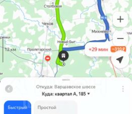 Выход на Симферопольское шоссе. 65 км до МКАД.