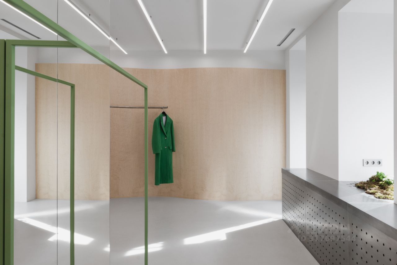 В магазине выполнен высококачественный ремонт по индивидуальному дизайну модного архитектурного бюро. Отделка дорогими материалами: шпон канадского клена, нержавеющая сталь. Вся мебель и освещение выполнены под заказ,