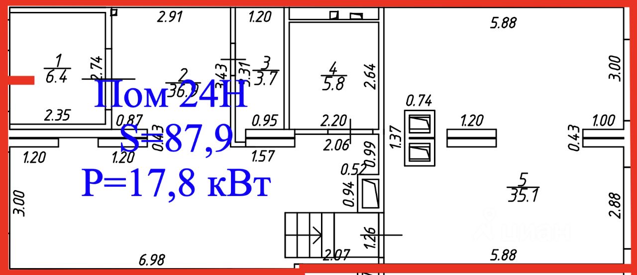 — 87,9 м², свободная планировка, потолки 4 м