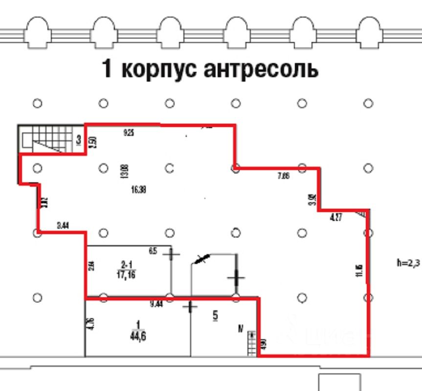 Антресоль над первым этажом. Потолок 2.2м. Без окон. Шаг колонн 5х5.