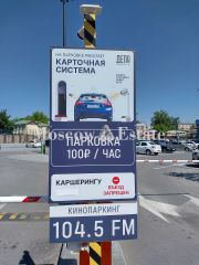 Есть большая почасовая парковка, 20 мин. бесплатно, далее 100 руб/час.
