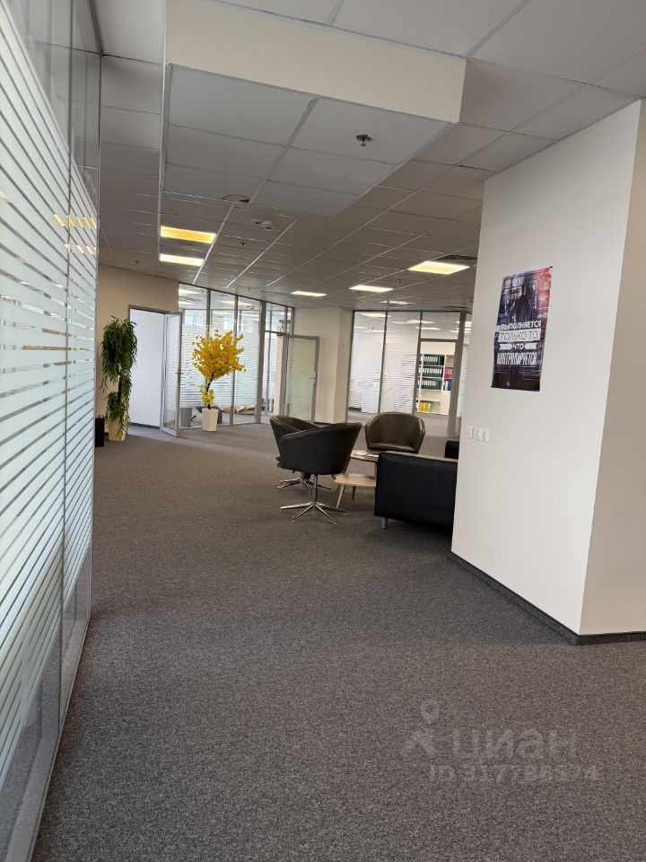 В офисе выполнена современная внутренняя отделка с встроенными стеклянными перегородками,