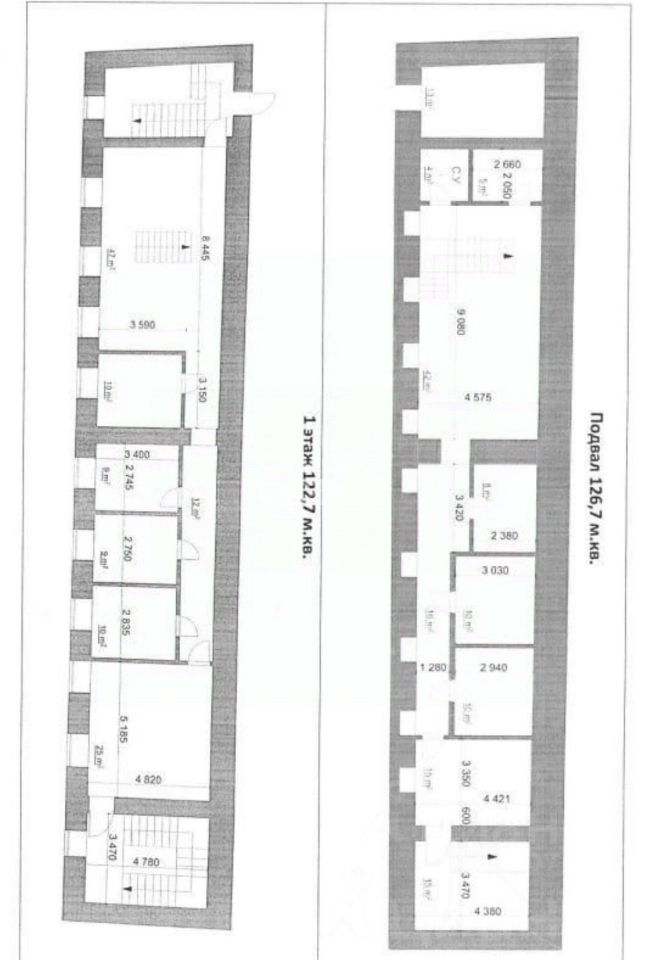 Этаж 1 и -1 в пятиэтажном кирпичном здании.
