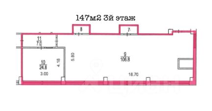 147м2 - 2 комнаты, Большие окна, 3й этаж, 285000р,