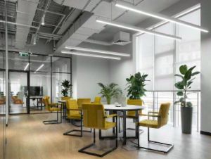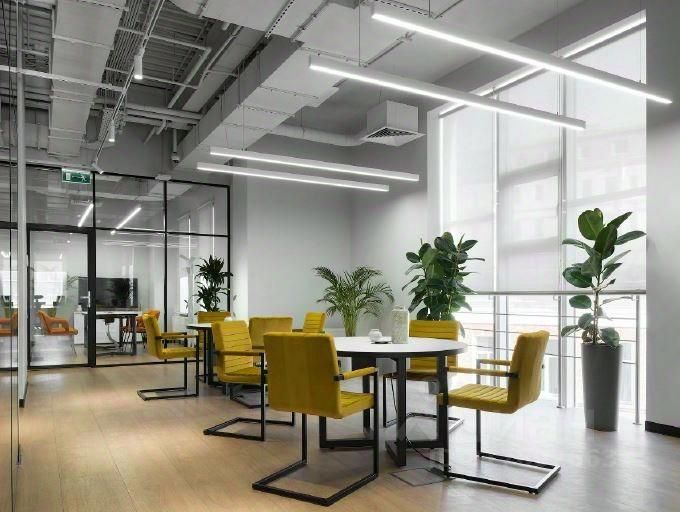 Здесь высокие потолки и большие окна наполняют пространство естественным светом, создавая приятную атмосферу для работы.