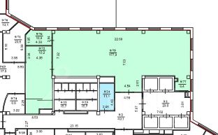 245 м2 - Офис с открытой планировкой / open space. Выделенной Большой переговорной комнатой со встроенным шкафом. Изолированный кабинет, отделён от общего помещения стекл. перегородками. Во входной зоне расположены встроенные шкафы