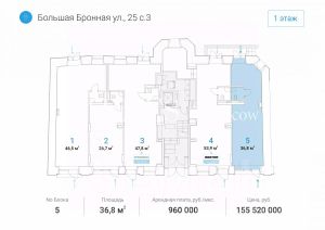 Предлагается в аренду коммерческое помещение, расположенное на улице Большая Бронная в Центральном административном округе Москвы, в престижном районе возле Патриарших. Объект находится в двух минутах пешком от станций метро "Пушкинская", "Тверская" и "Чеховская", что гарантирует высокий пешеходный трафик.