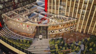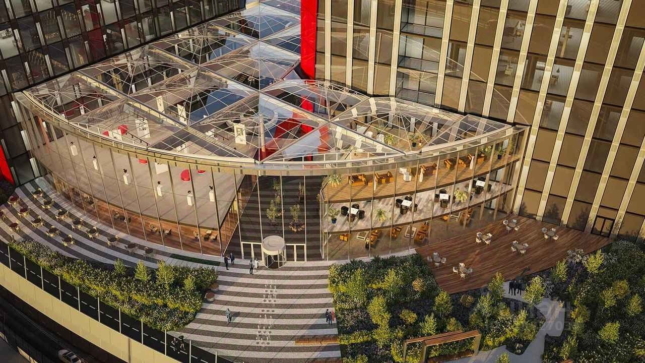 Особенность небоскреба — концепция ландшафтного дизайна с озеленением восьмиэтажного стилобата, плавно перетекающим из внутреннего атриума в открытый сад.