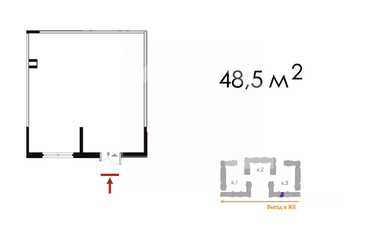 961092 . Предлагаем помещение свободного назначения формата Street Retail, площадью 48,5 кв. м, расположенное на первом этаже 7-этажного жилого дома в ЖК "Новое Летово".
