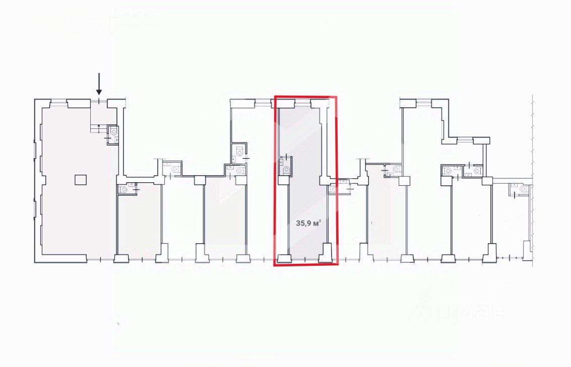 636158 . Предлагаем помещение свободного назначения формата street-retail, площадью 35.9 кв. м, расположенное на первом этаже 4-этажного жилого дома.