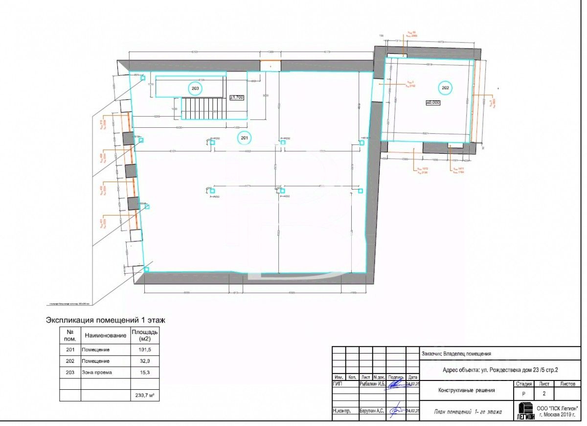 Общая площадь здания составляет 706 кв.м., 2 этажа + подвал. Планировка смешанная. Высота потолков на 1 этаже- 3,6 м, второй этаж - 6.26 м, подвал - 3 м с окнами. Возможно увеличение площади на 350 кв.м.
