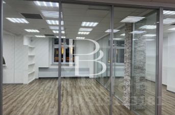 Общая площадь помещения 348 м2. Смешанная планировка. Офисный ремонт. Есть кухонная зона и серверная.