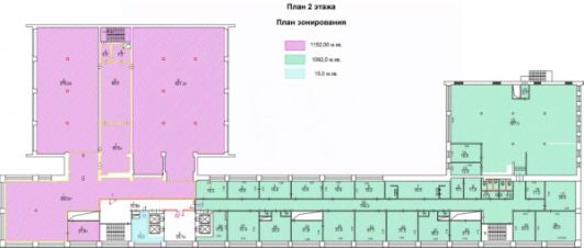 Общая площадь офисных помещений 2043,75 кв.м., где 2 и 3 этажи целиком. Планировка смешанная. Отделка типовая.