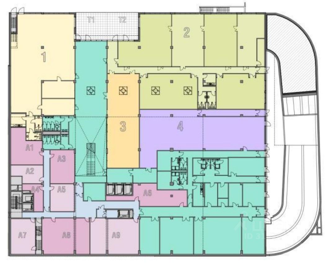 Анастасия. Предлагается под аренду офисный блок на цокольном этаже. Выполнена стандартная отделка. Базовая арендная ставка устанавливается по запросу (от 18 500 до 23 000 руб. за кв.м. в год + НДС) и зависит от ряда факторов. Круглосуточный доступ в здание. Срок освобождения обсуждаются дополнительно. Представлена типовая фотография и общий план этажа.