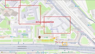 В 20м от входа в помещение расположен вход на территорию студенческого общежития МАИ, в 200м расположено еще 2 учебных заведения - Росбиотех, колледж Росбиотеха, недалеко Академия Следственного Комитета.