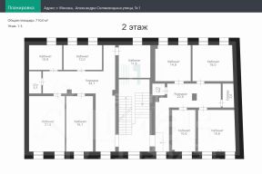 На этажах расположены многочисленные кабинеты, комната охраны, комната отдыха, санузлы, гардероб, ресепшен.