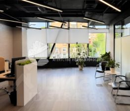 Смешанная планировка: Open spaces (суммарно на 80 р.м.), кабинет ГД + приемная, переговорные комнаты, кофе-пойнт, лаунж зона, серверная, с/у, вспомогательные помещения.