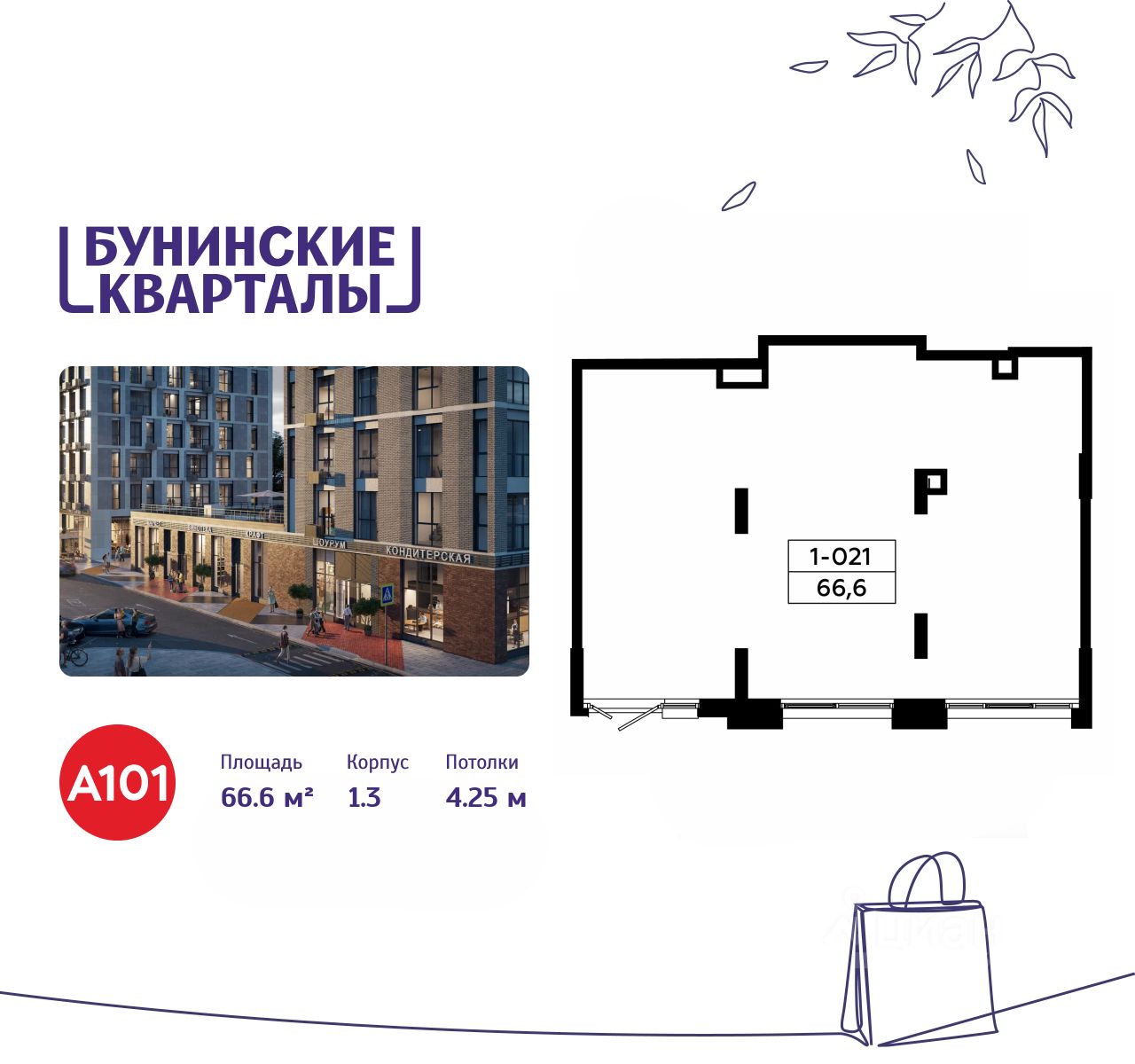 Сдаются помещения площадью от 63.20. на 1-м этаже ЖК Бунинские кварталы.
