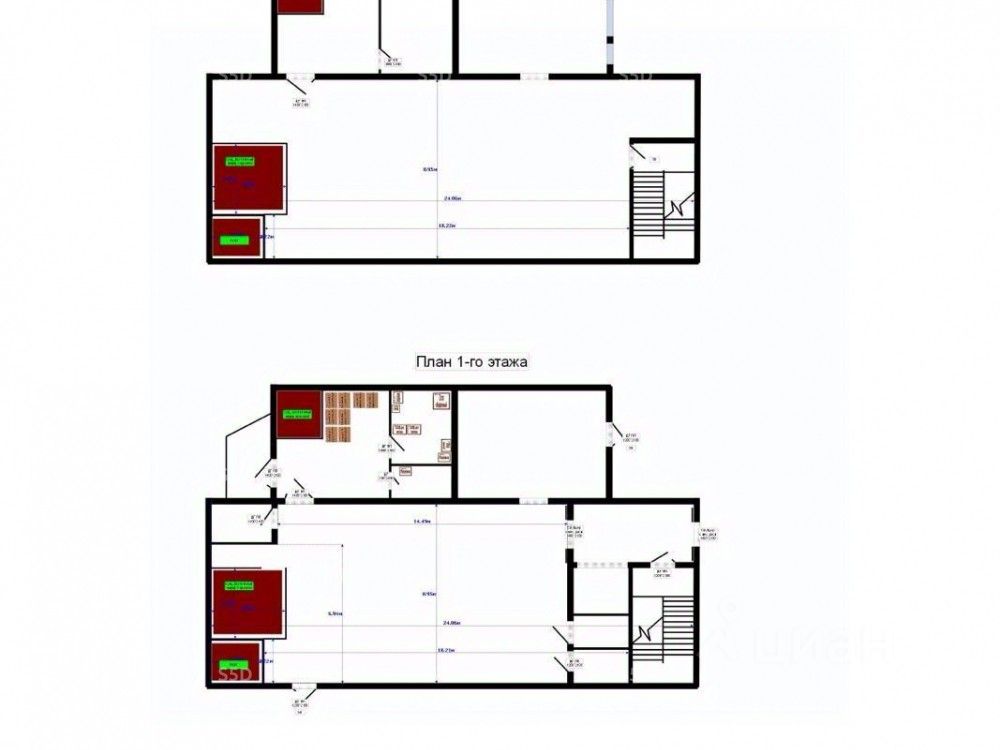 Общая площадь - 616 кв.м. (1-й этаж: 307 кв.м. 2-й этаж: 309 кв.м.).