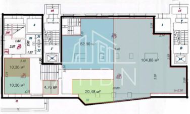 ID 966578 Офис - 53.8 м2 (отмечен розовым цветом) 1-я линия, есть мокрая точка