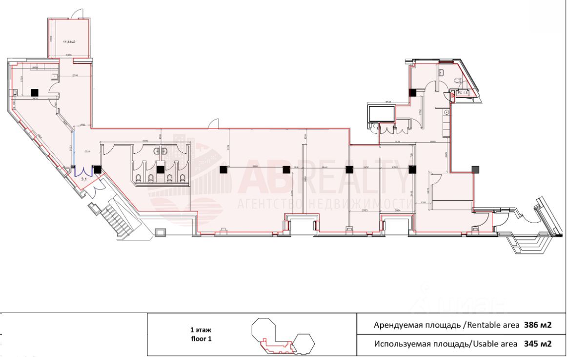 1 этаж офис площадью 386 кв.м.