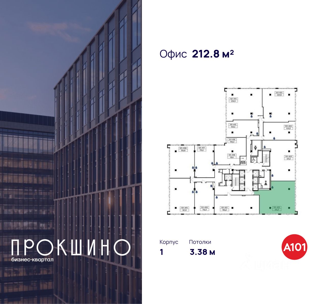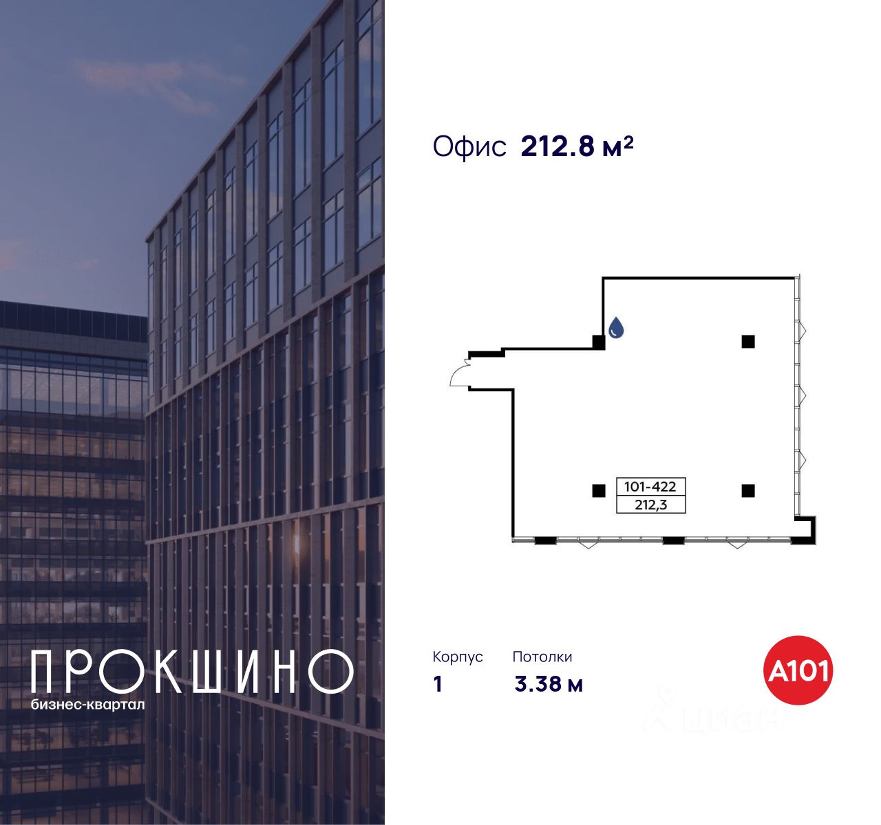 Сдаётся офисное помещение площадью 212.8 кв. м. в Бизнес-квартал "Прокшино". Чистовая отделка. Высота потолков 3.38 м. Выделенная электрическая мощность — 18 кВт. Стоимость аренды помещения — 611 470 руб. в месяц . Офисное помещение в бизнес-квартале "Прокшино" на юго-западе Москвы в 1й минуте от метро "Прокшино".
